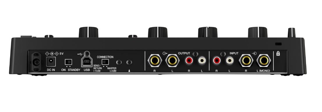 Inspirada em equipamentos profissionais da linha ProDJ, reúne recursos icônicos como o Isolator FX da DJM-2000, o X-Pad da DJM-900NXS e as cadeias de FX do EFX-1000, proporcionando controle físico intuitivo para DJs e produtores.